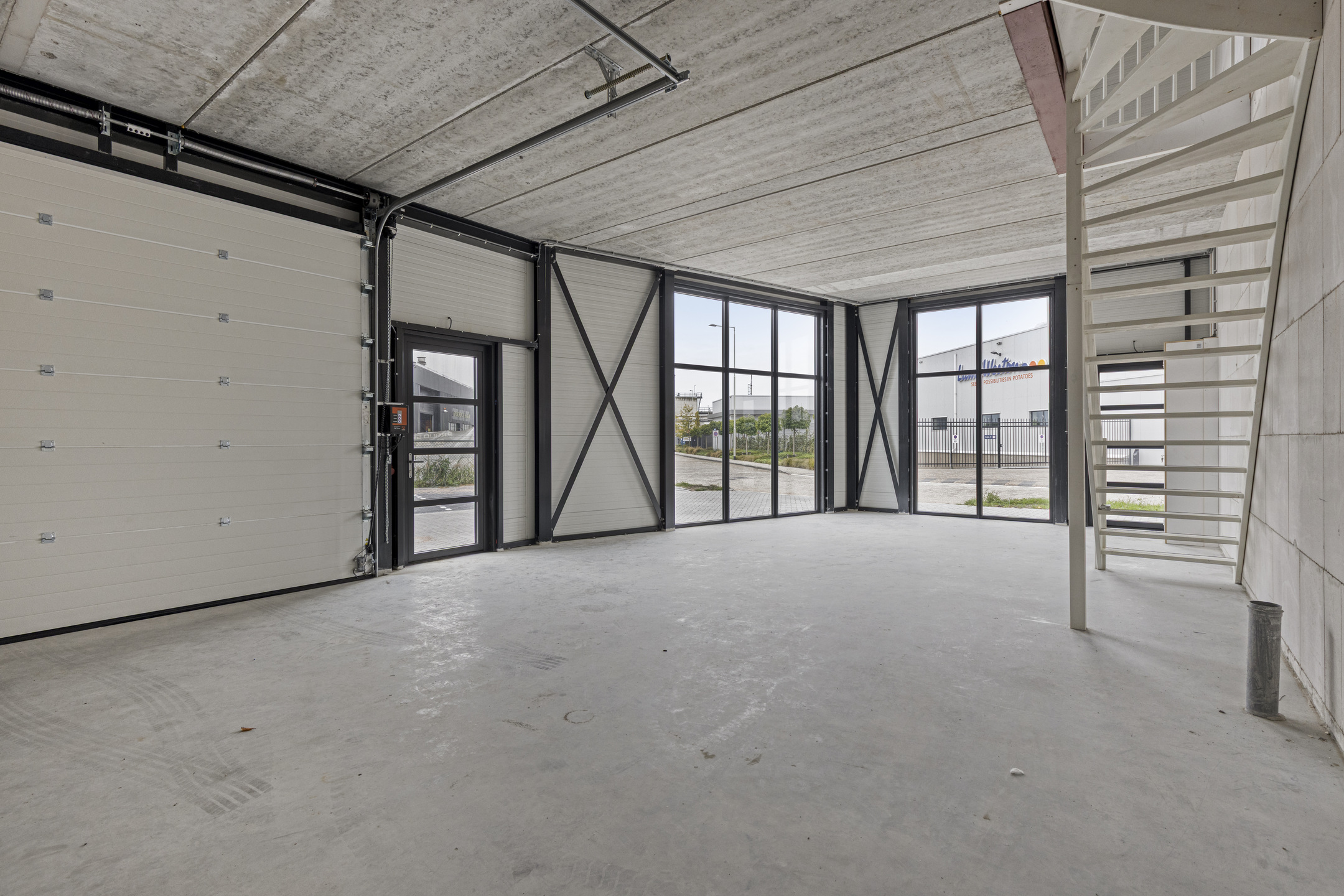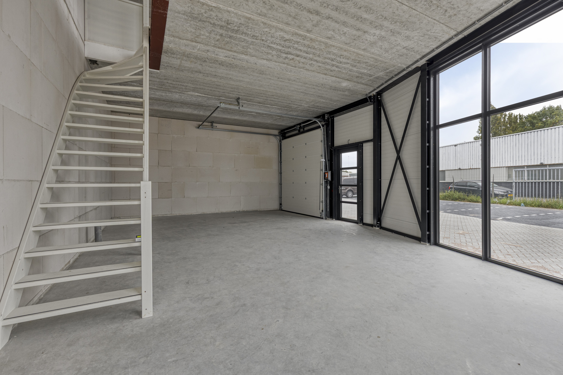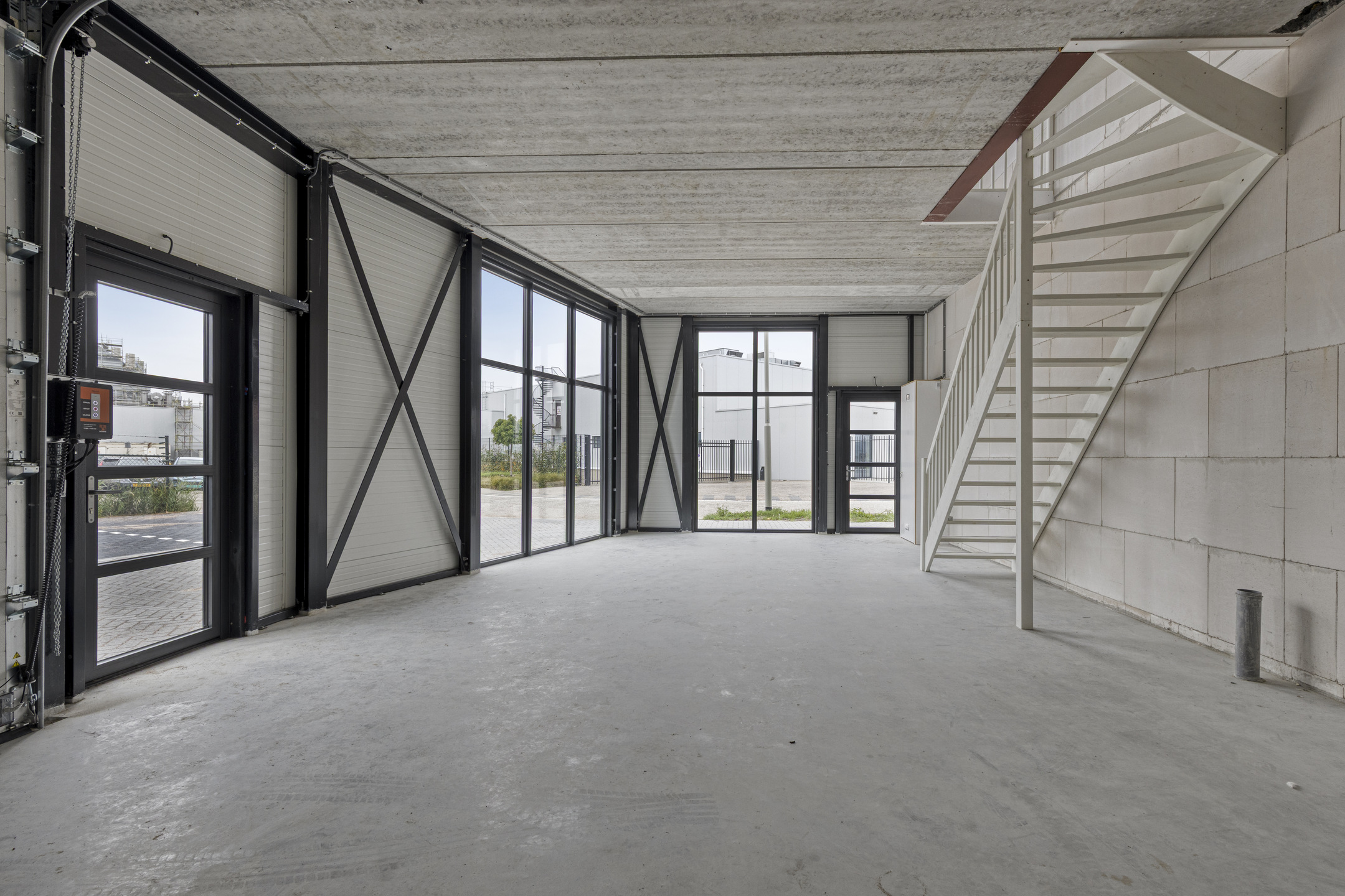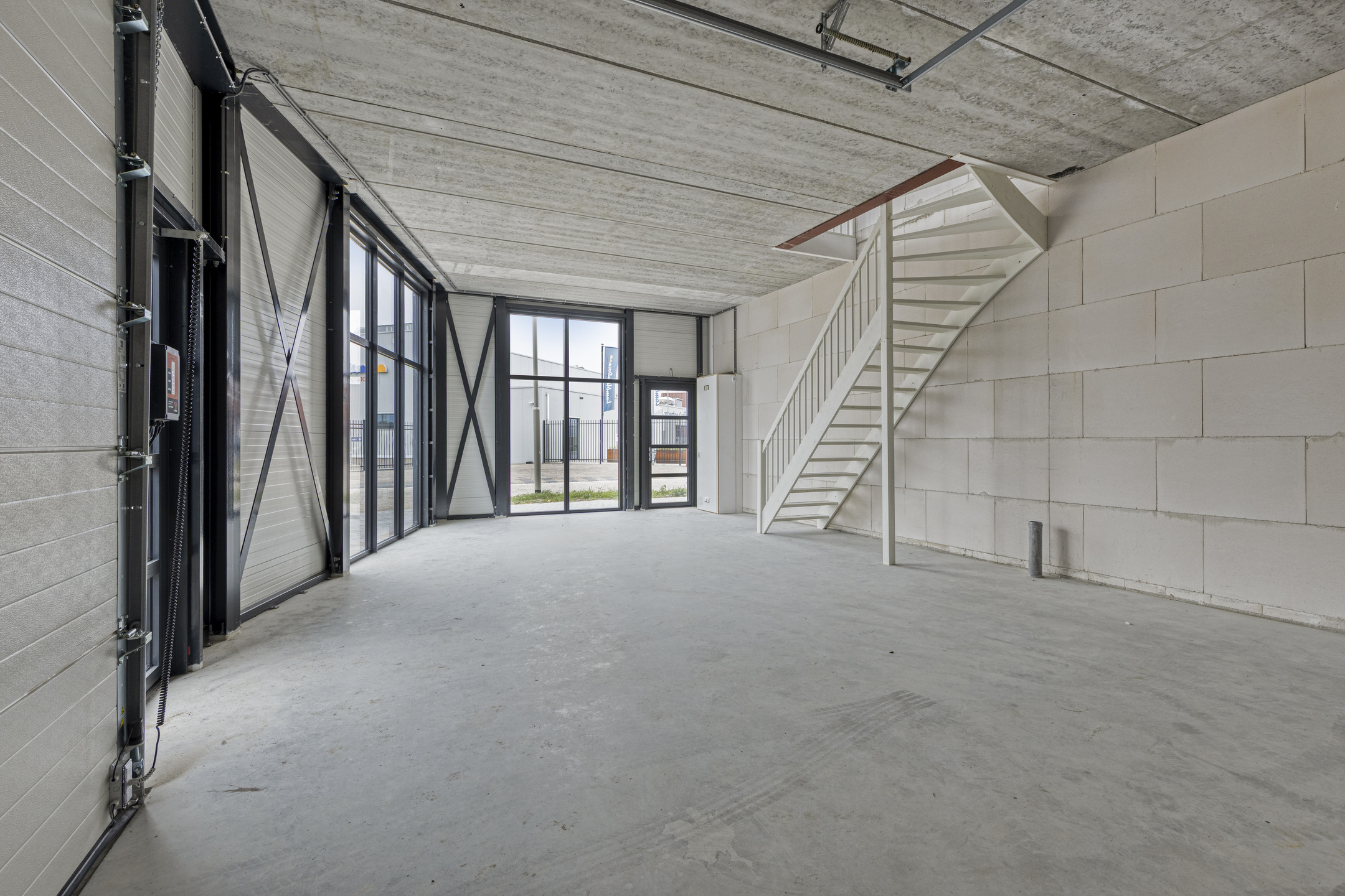 Deze moderne bedrijfsunit behoort tot de grotere units binnen het verzamelgebouw, beschikt over meerdere toegangen, geniet van veel daglicht dankzij de royale raampartijen en onderscheidt zich hiermee duidelijk van de rest. De unit is verdeeld over twee verdiepingen, die met een vaste trap met elkaar zijn verbonden.