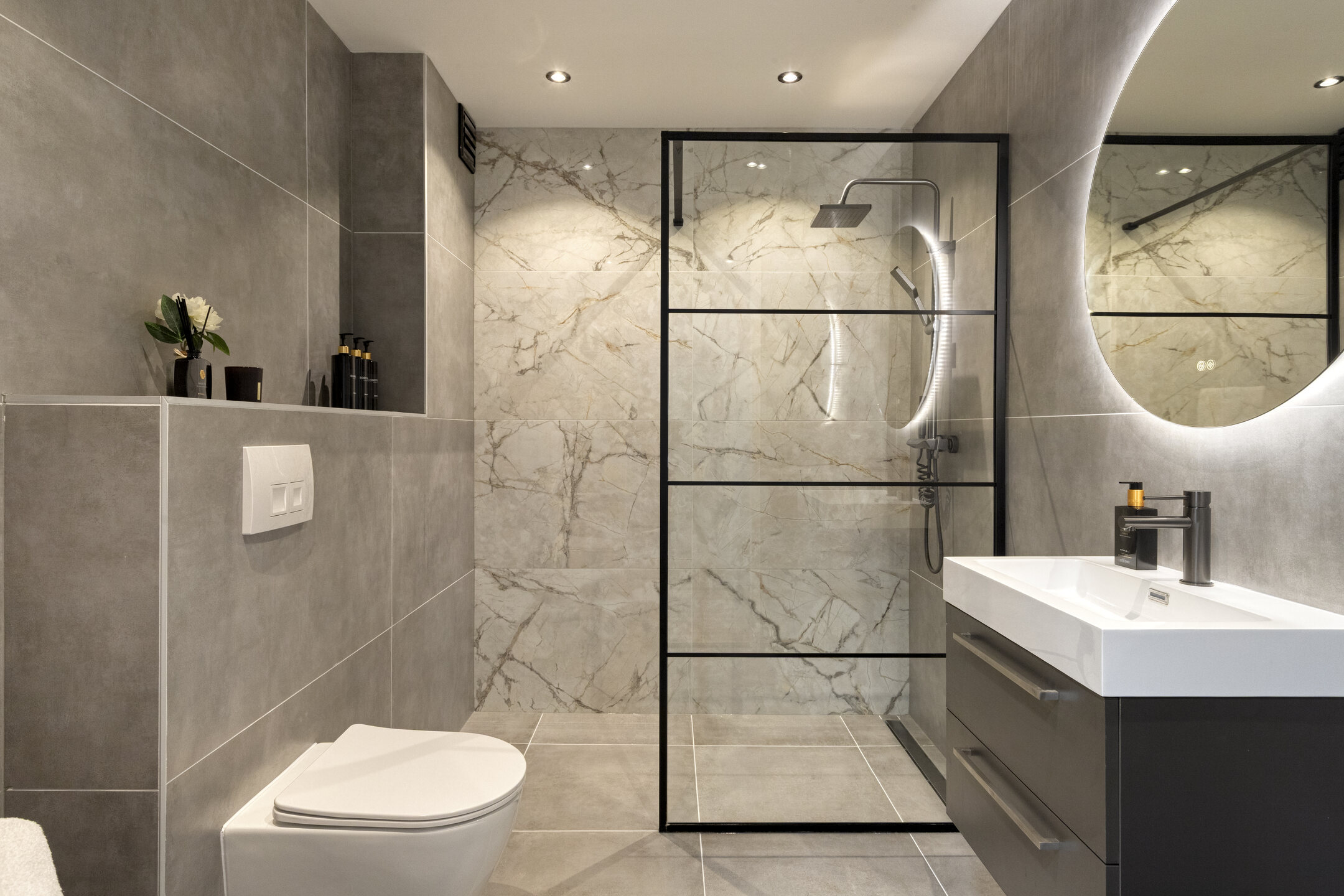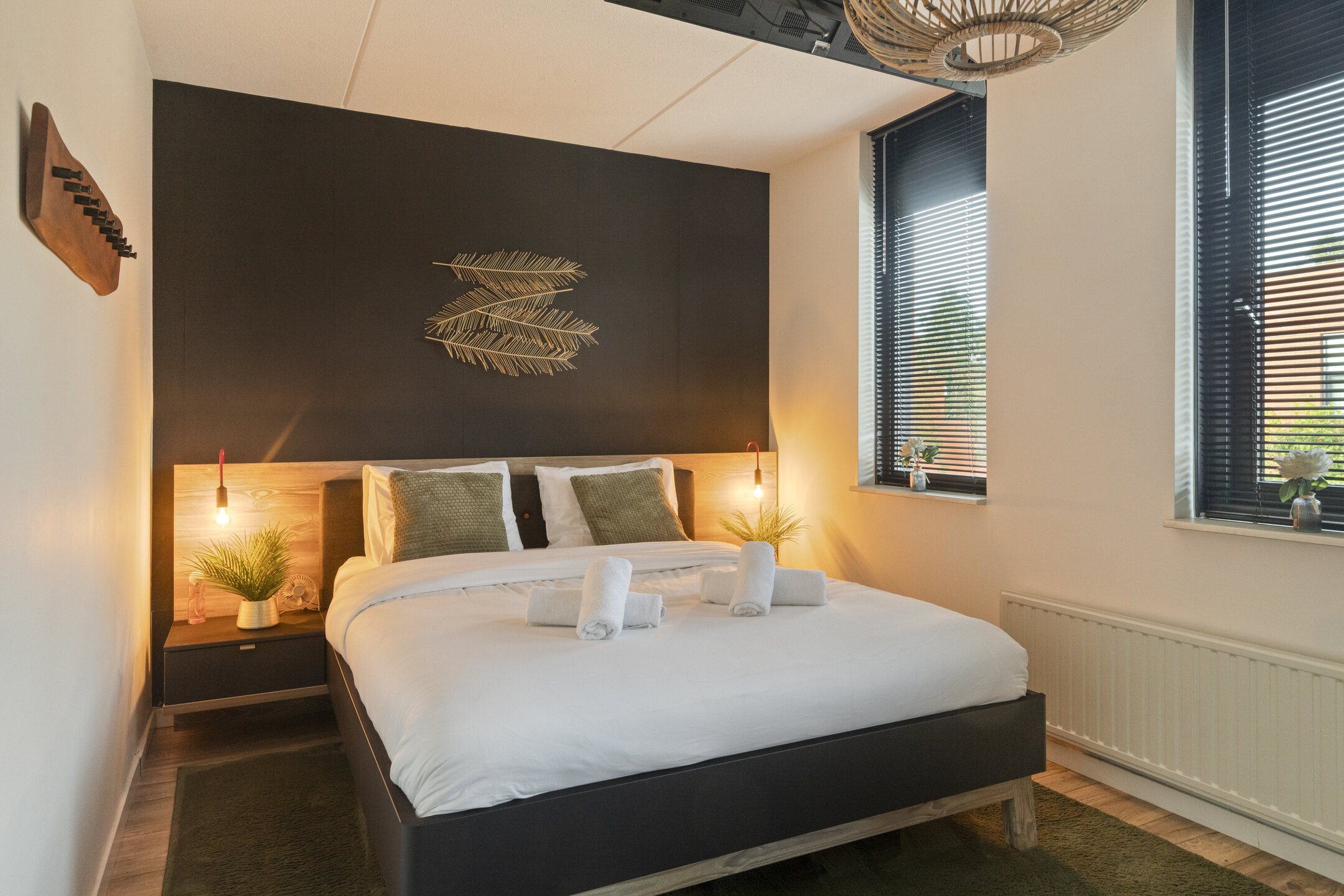 De overloop biedt toegang tot drie slaapkamers, een bergkast met opstelplaats van de HR-combiketel en de recent vernieuwde badkamer (2025). De badkamer is ingericht met een inloopdouche, modern wastafelmeubel en toilet, geheel in de luxe stijl van de rest van de woning. De slaapkamers zijn voorzien van een nette laminaatvloer.
