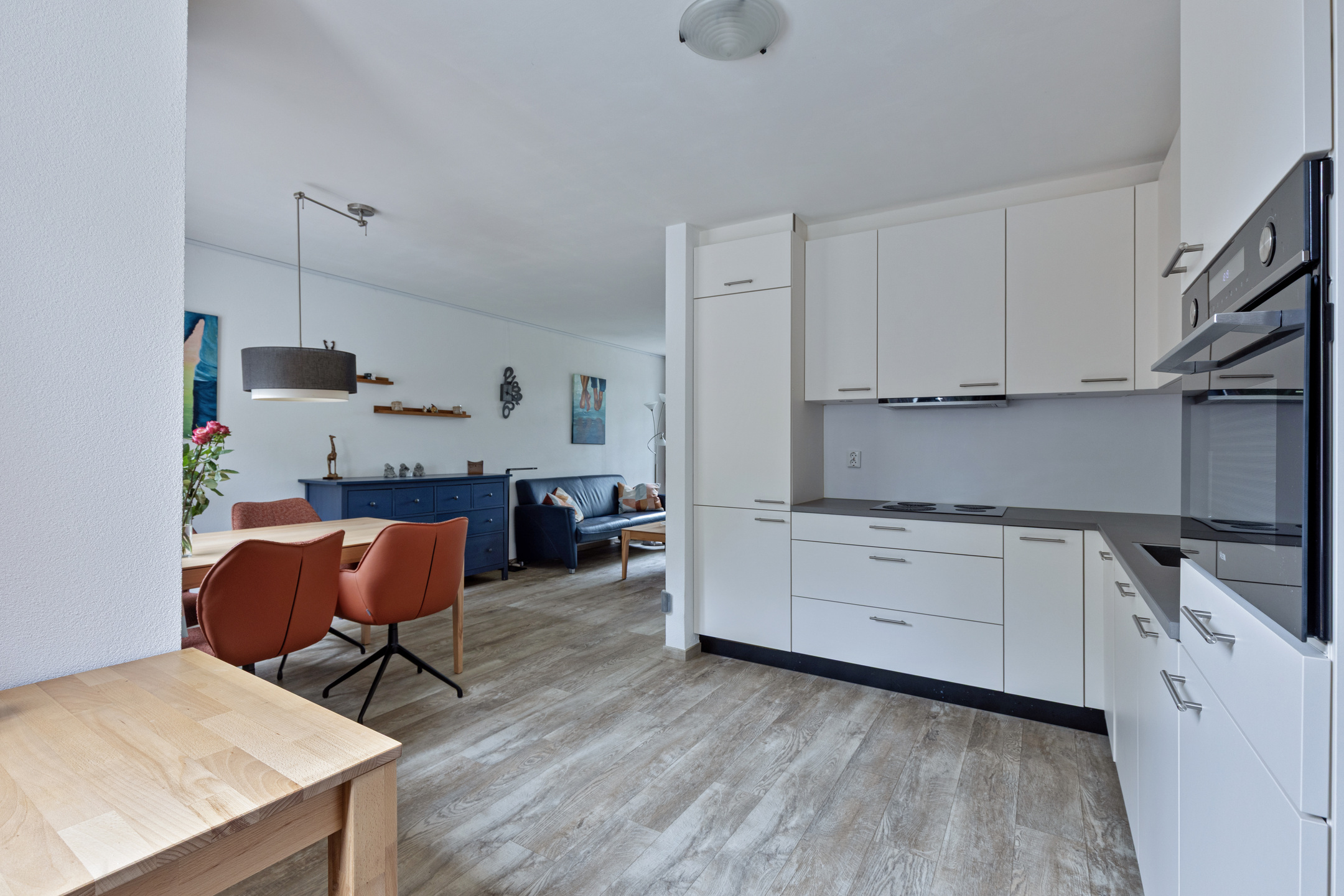Via de hal/entree bereikt u het toilet en de uitgebreide meterkast met maar liefst 11 groepen, een kookgroep en 2 aardlekschakelaars. Vanuit de hal komt u in de L-vormige woonkamer met veel lichtinval en een strakke pvc-vloerafwerking. De moderne keuken (2023) is uitgerust met diverse inbouwapparatuur, waaronder een inductiekookplaat, afzuigkap, combi-oven, koelkast en vaatwasser. Aansluitend vindt u de praktische bijkeuken, ideaal voor extra opslag en uw boodschappen. Groot voordeel is de privacy: vanuit de woonkamer kijkt u uit over het groene, bosrijke gebied aan de achterzijde.