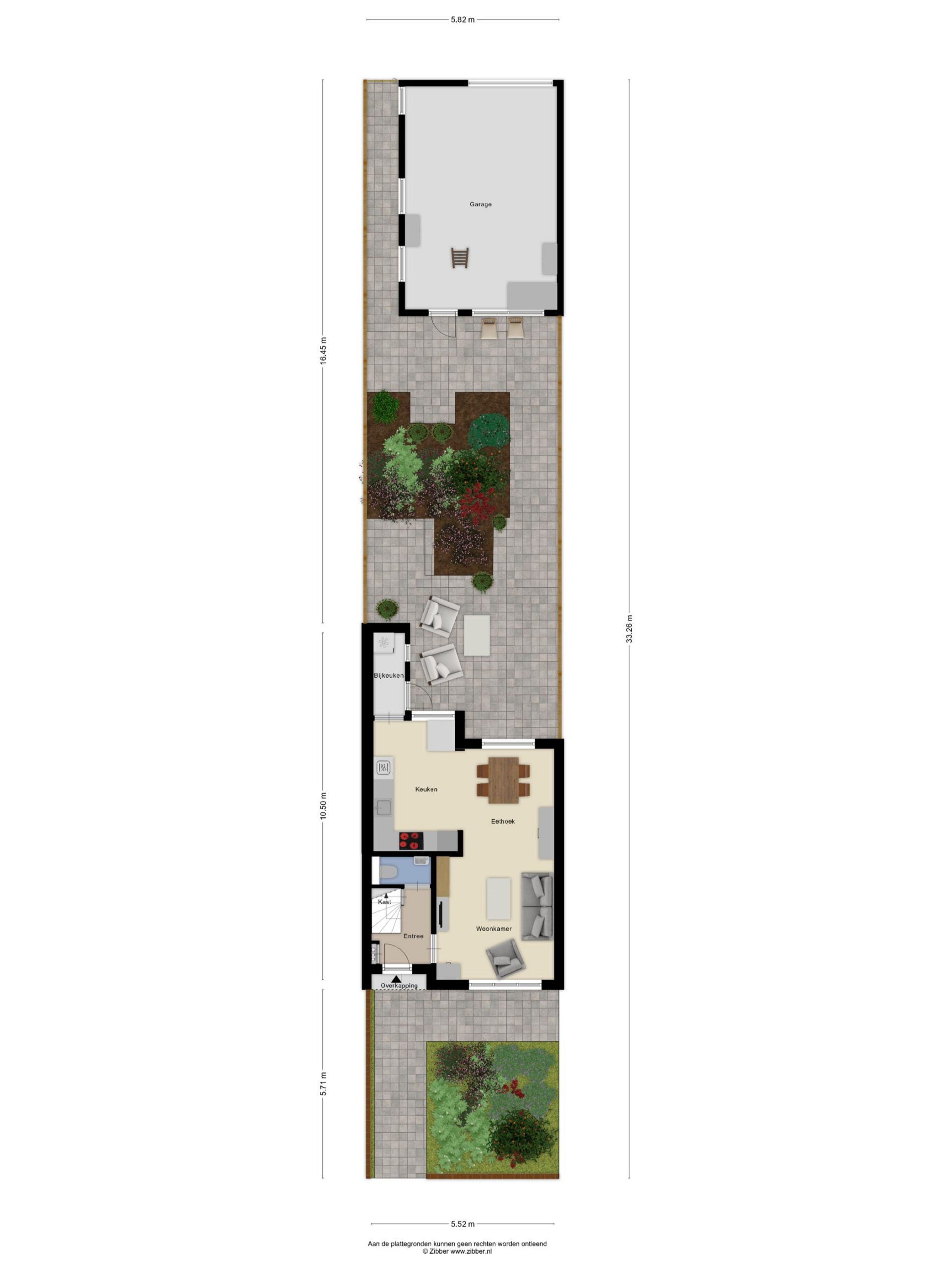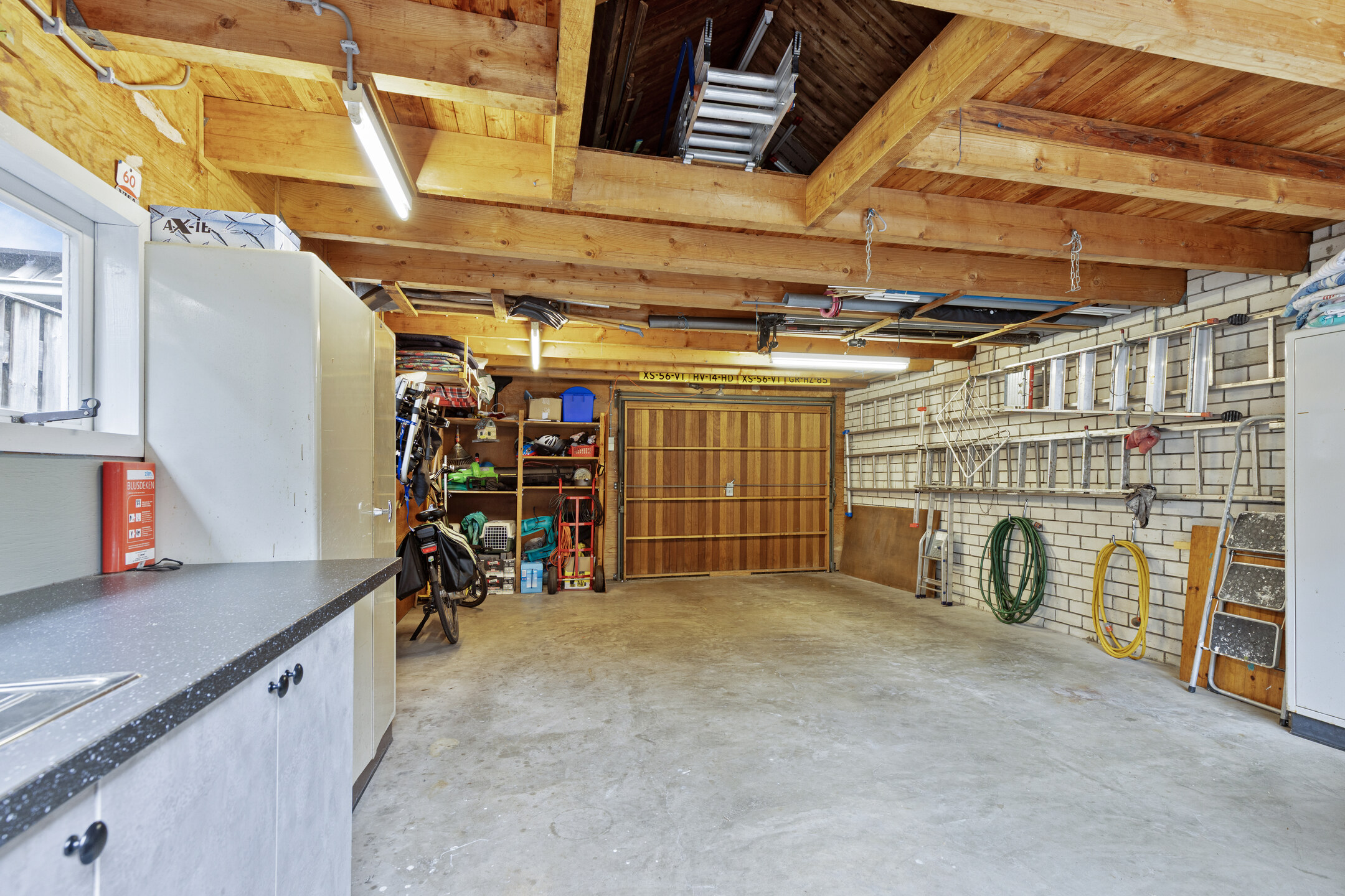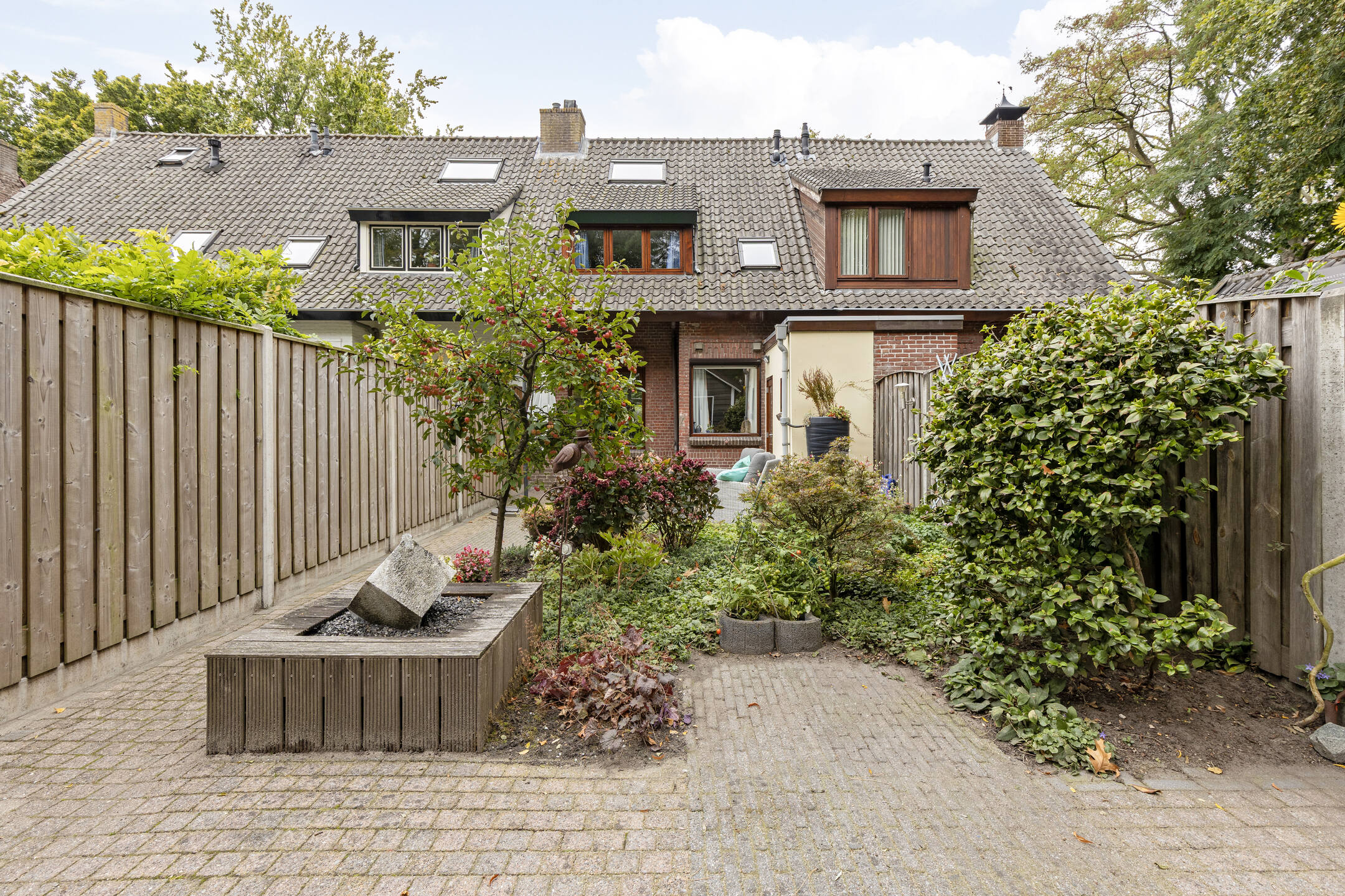 De achtertuin is een echt pluspunt: privacygericht, groen ingericht en voorzien van een ruime garage met bergzolder. Een fijne plek die volledig aansluit bij de bosrijke omgeving van de woning.
