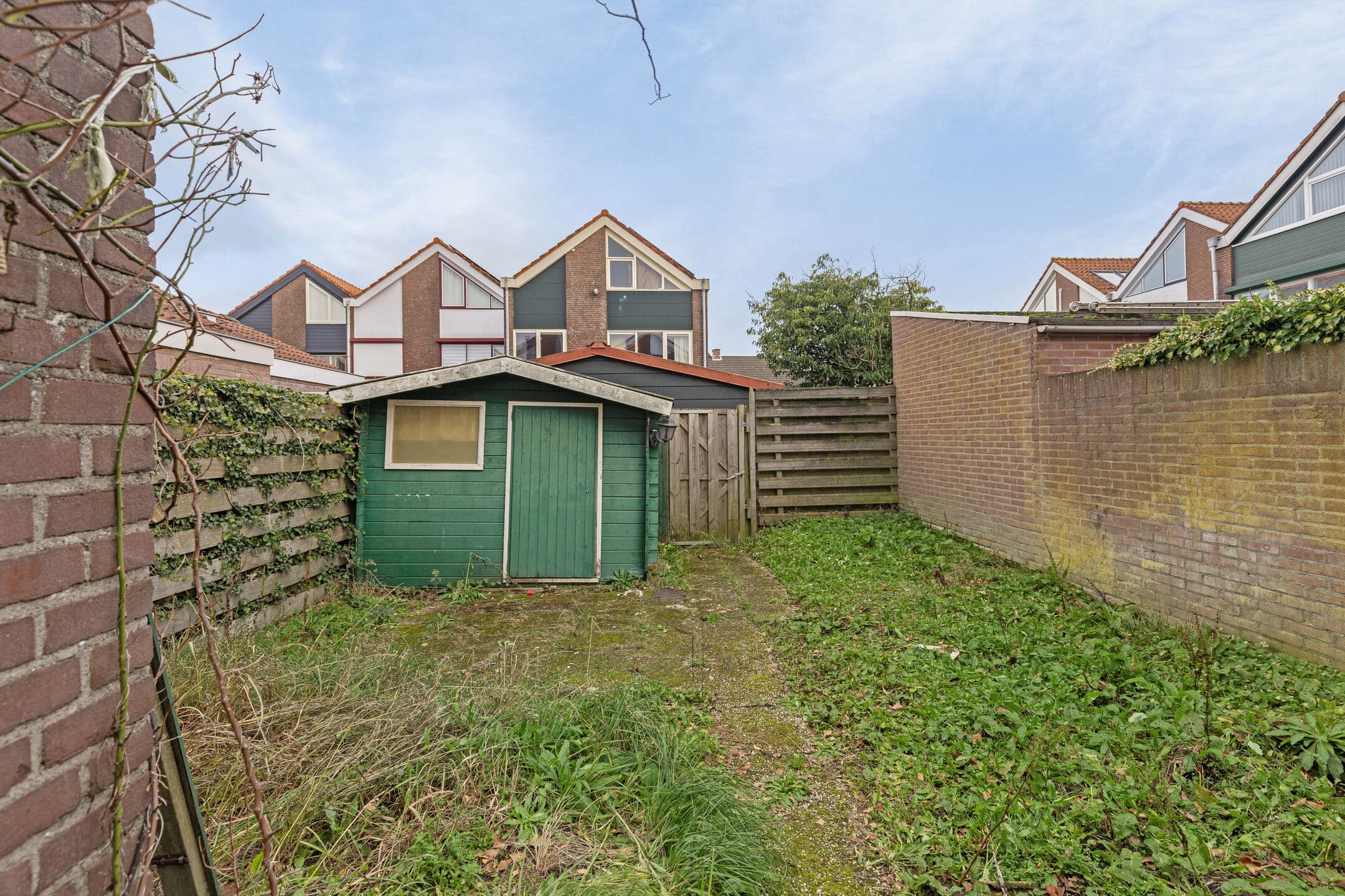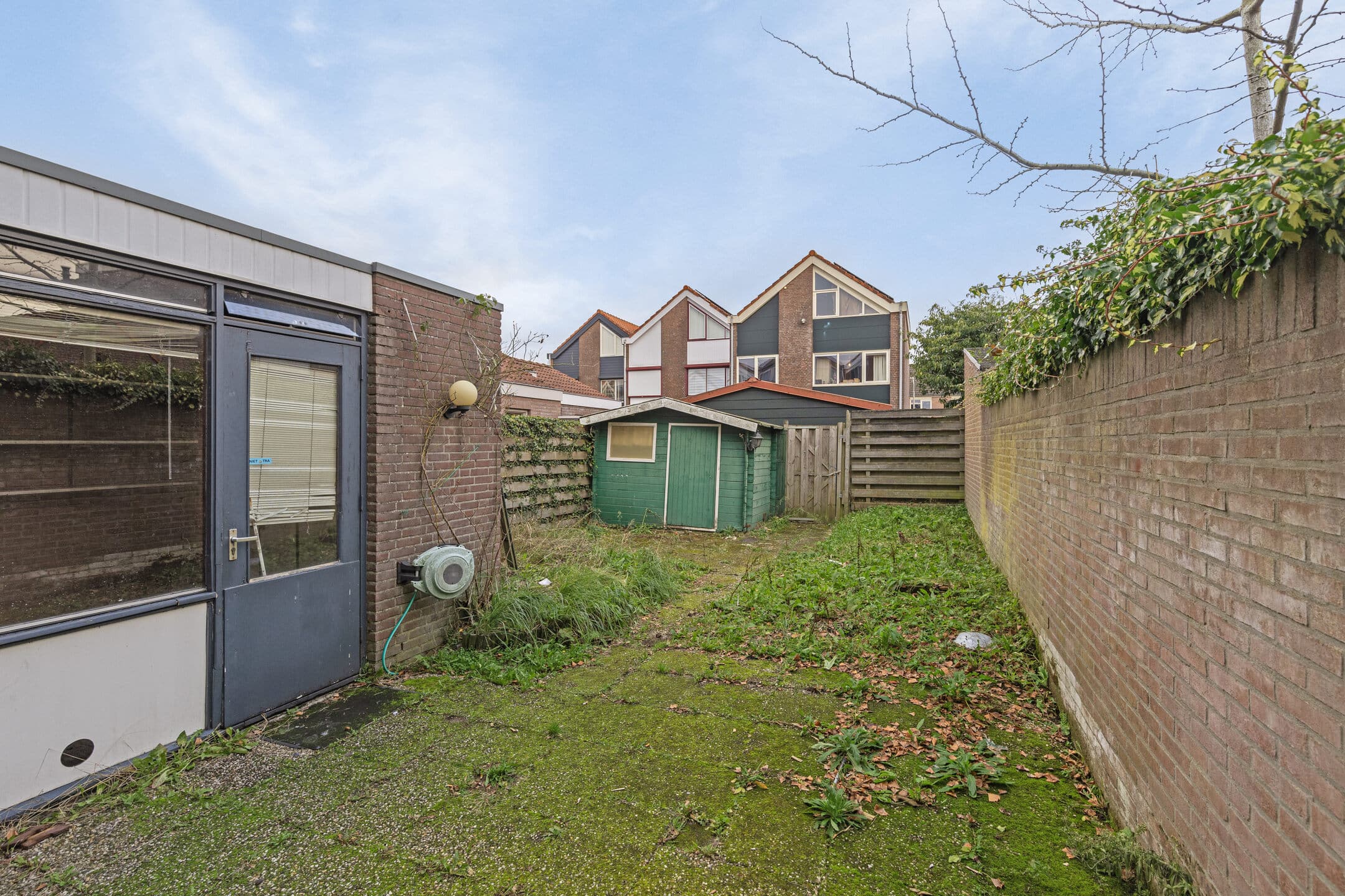 Via de schuifpui in de eetkamer en de deur in de open keuken betreedt u de aan te leggen achtertuin. Vanuit de achtertuin heeft u toegang tot een achterom en de houten schuur van circa 5 m², die perfect geschikt is voor het opbergen van fietsen, gereedschap en/of andere materialen.